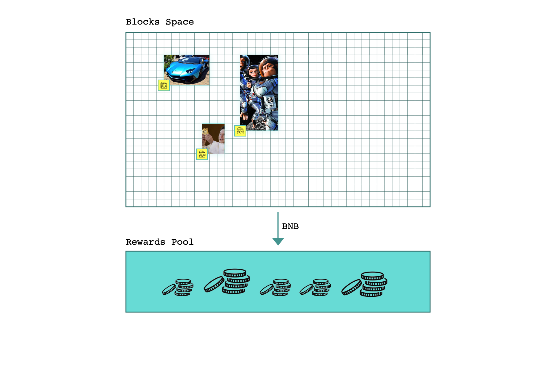 To claim a block area you will need to invest. Or not, if you are early! Read on to learn more. In any case, we are talking test BNBs on testnet and BNB or BLS (BlocksSpace) tokens on mainnet 🙃