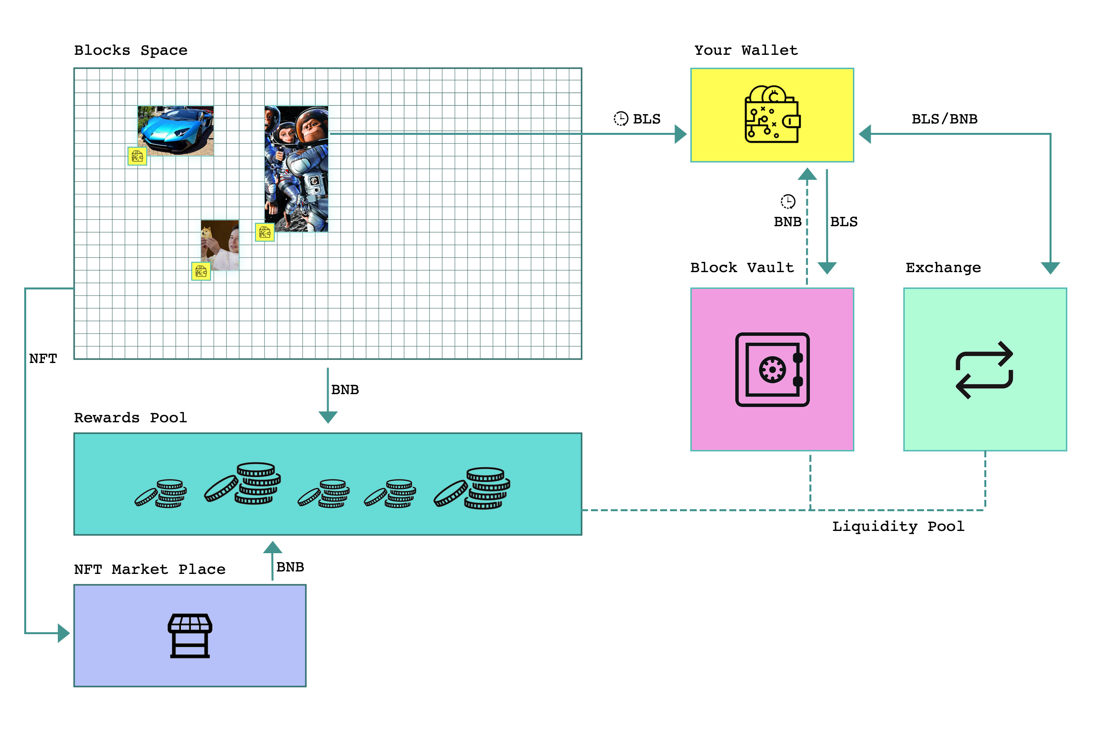 9. Once the NFT from the Block Space is created and sold, the profit of it will also go into the Rewards Pool. Means everyone having BLS in the Block Vault will get a share of it!